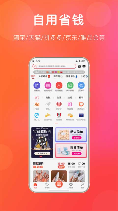 女装、男装、鞋包、美妆、护肤、家居、母婴、零食、数码…优惠一网打尽