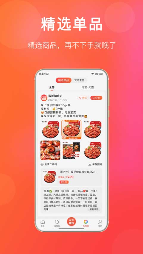 扒折扣app是专注品牌折扣特卖的一款专业返利特卖导购平台,该平台聚合国内外一线品牌商的千万优质特卖商品与淘宝、天猫、京东的丰富折扣优惠券,可让用户在这里通过一元购、拼团购、九块九等多种特卖折扣服务,随时随地以低于市面80%的价格买到高品质的商品,涵盖女装、男装、鞋包、美妆、加点、美食、百货以及日常生活必备品类。再加上独特的签到有奖、好友邀请及返利机制,打造更低折扣,更高品质,更低价格,更实惠,更省钱的购物体验,全方位满足不同用户的个性化购物需求。感兴趣的朋友欢迎免费下载使用。