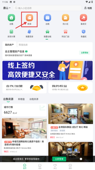 1、打开房产类应用,点击顶部新房选项,进入新房列表页面。