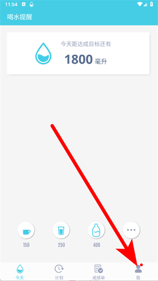 1、打开喝水提醒,点击页面底部的我,进入个人页面。