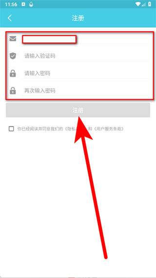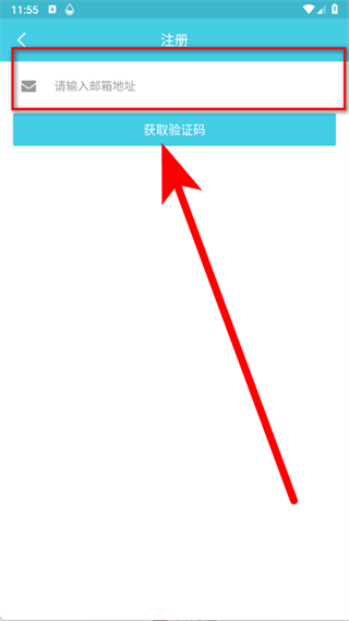 4、在注册页面,输入邮箱地址,点击获取验证码按钮。
