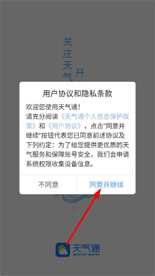 1、在用户协议和隐私条款弹窗中,点击同意并继续,进入主页面。