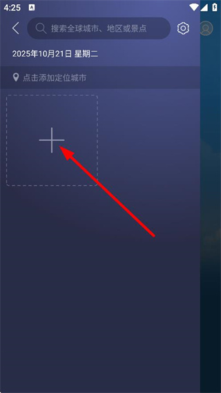 2、在APP主页面,点击+的图标,进入城市选择页面。