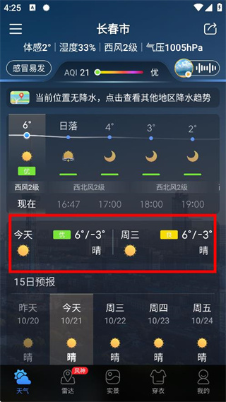 4、在长春市天气页面,可查看长春的天气信息,如温度、天气状况等。