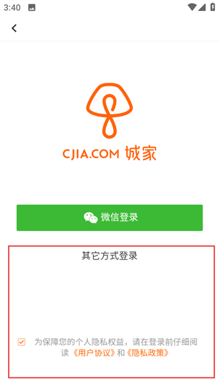 3、在登录选择页面,同意协议选择其它方式登录进入登录页面。