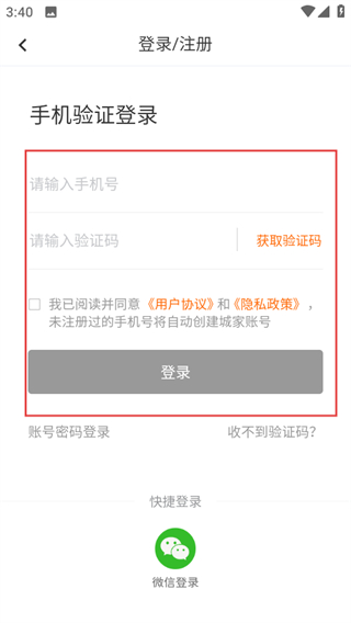4、若选择手机验证登录,输入信息同意协议后点击登录,完成登录。