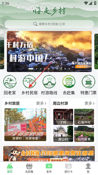 1、进入嗨走乡村首页,点击乡村民宿,进入乡村民宿搜索页面。