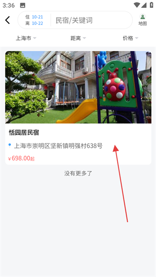 3、在民宿列表页面,选择想要的民宿,如恬园居民宿,进入民宿详情页面。