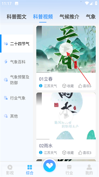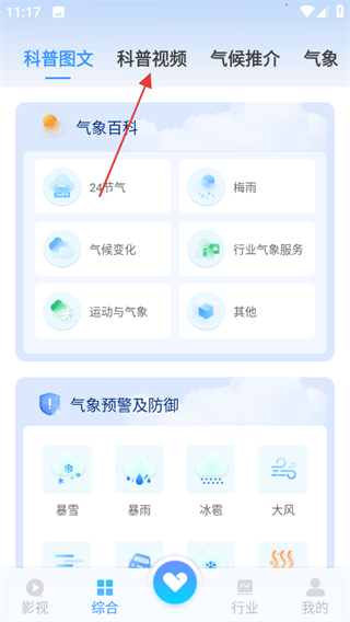 2、在综合板块,点击科普视频可查看气象科普视频内容。