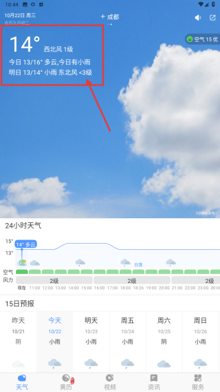 4、在成都天气预览页,查看当地气温、风向、降水等详细天气信息。