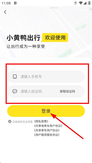 3、在登录页面,输入手机号、验证码,点击登录,完成账号登录。