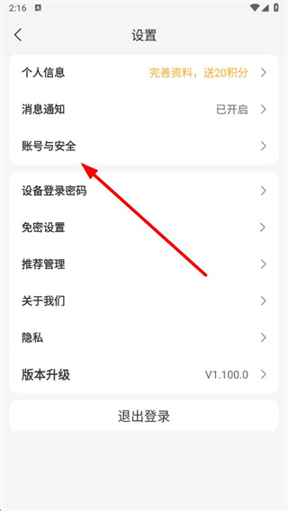 3、在设置界面点击账号与安全选项,进入账号安全页面。