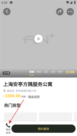 4、在房源详情页,可点击电话咨询进一步了解房源,满意的话就可以租下。