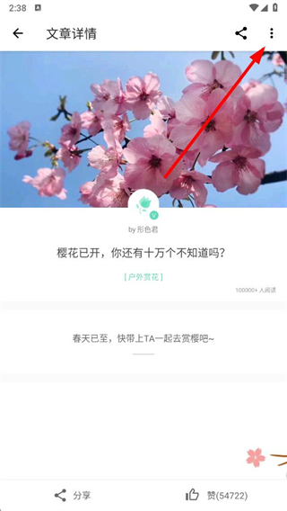 2、在文章详情页面点击右上角的三点菜单图标,弹出操作选项。