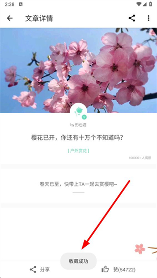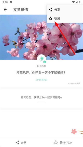 1、打开形色植物识别app,点击感兴趣的文章,进入文章详情页面。