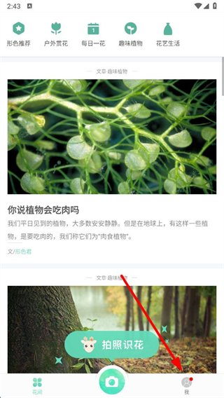 1、打开形色植物识别app,点击右下角我选项,进入个人页面。