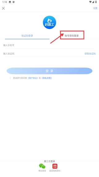 3、在登录方式选择界面,点击账号密码登录选项,进入账号密码登录页面。
