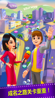 游戏拥有50多个精心设计的关卡,每一关都充满趣味和挑战,让你在闯关中逐步成长为真正的明星。你可以从10位风格迥异的明星角色中选择你心仪的人物,每位角色都拥有独特的好莱坞气质。此外,游戏还提供了6种炫酷的明星道具,如火箭靴、超人服装、泡泡糖弹跳和专属敞篷车等,助你轻松应对各种挑战。当你跑过粉丝身旁时,他们会为你疯狂尖叫,让你感受真实的明星待遇。你还可以与好友一较高下,争夺好莱坞最受关注明星的称号,看看谁能创造最高分!
