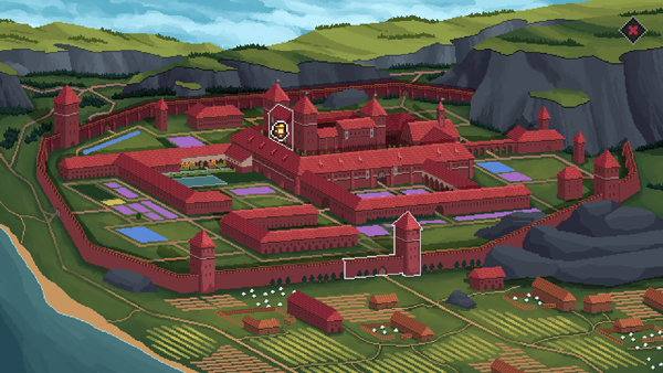 4、接着控制角色走到门的边缘,可以看到王国的城堡地图,点击亮光处位置;地图采用多层设计,滑动可查看不同区域,某些隐藏区域需要特定条件解锁,建议多探索。