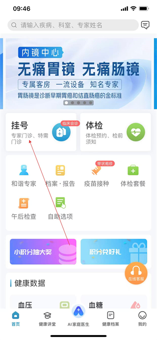 1、打开和谐医疗APP,在首页点击挂号。