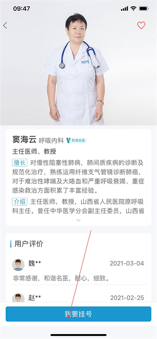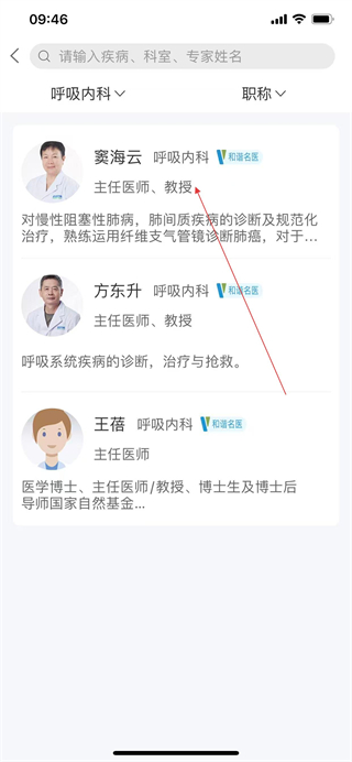 3、在科室页面中,选择要挂号的医生,查看医生的擅长领域和介绍。