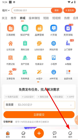 1、打开猪八戒app,点击底部导航栏中我的图标,进入个人相关界面。