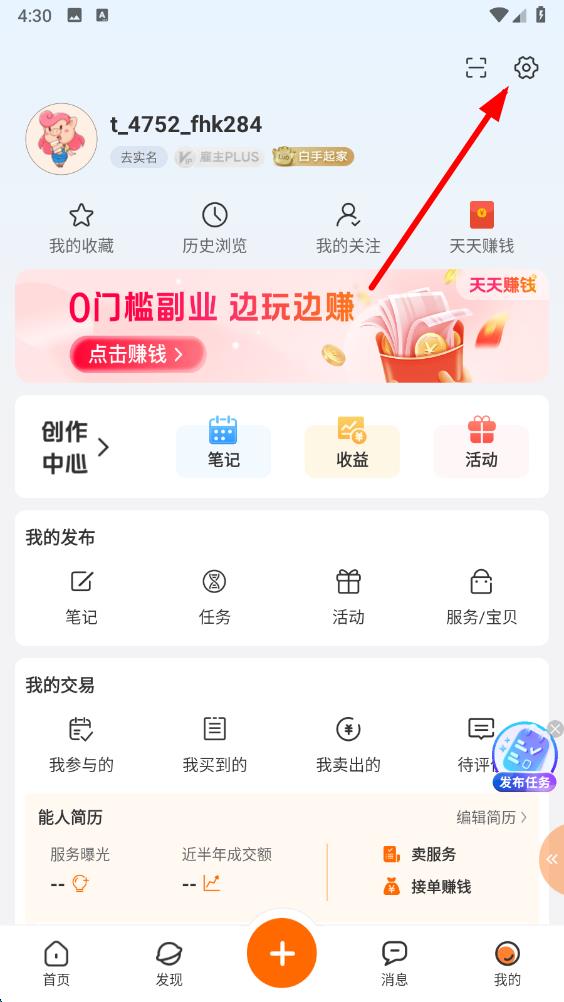 2、在个人界面右上角,点击设置图标,进入账户设置页面。