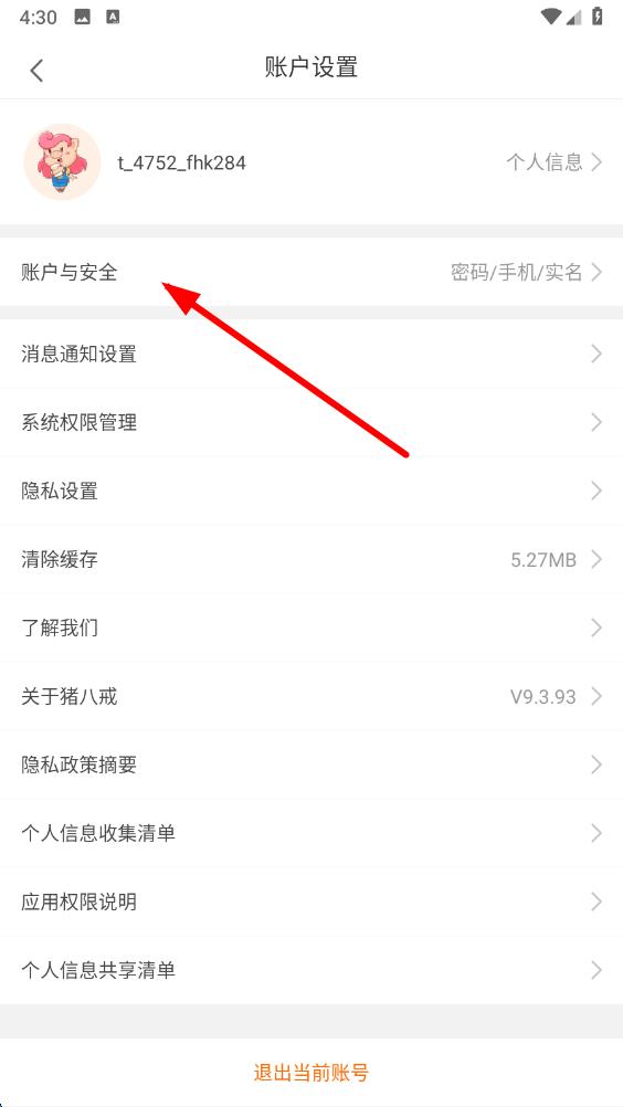 3、在账户设置页面里,找到并点击账户与安全选项,进入账户与安全设置界面。