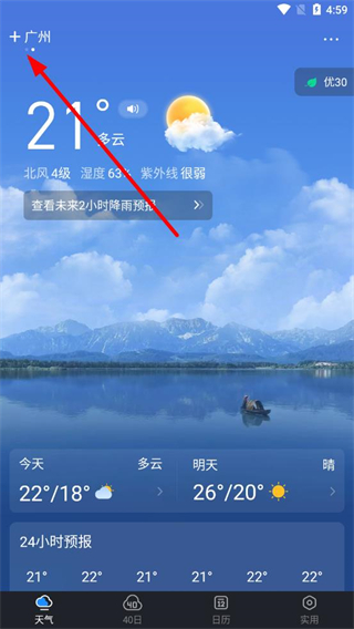 1、在祥瑞天气app界面点击左上角加号,进入城市管理页面。
