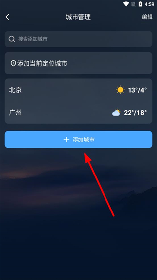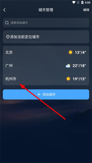 2、在城市管理页面点击添加城市选项,进入添加城市页面。