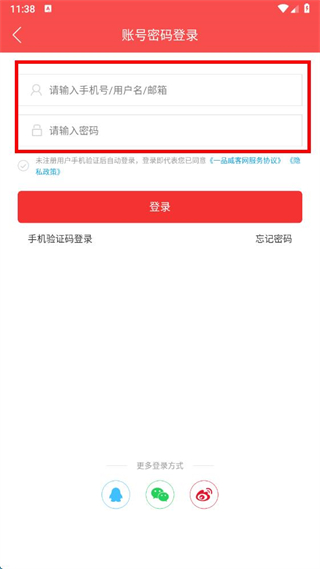 3、在账号密码登录页面输入手机号用户名邮箱和密码。