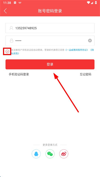 4、勾选同意相关协议,点击登录按钮,即可完成账号密码登录。