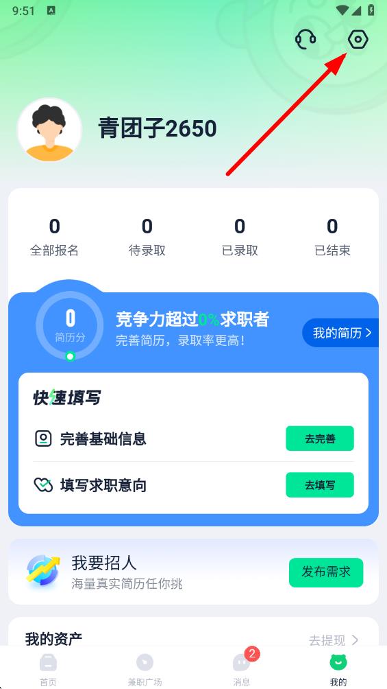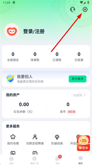 1、在青团社兼职app界面点击我的选项,进入个人页面。