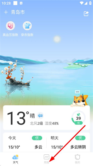 2、在APP首页,点击底部的预报,进入预报页面。