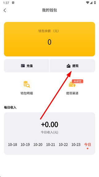 2、在我的钱包页面点击提现选项,进入提现页面。