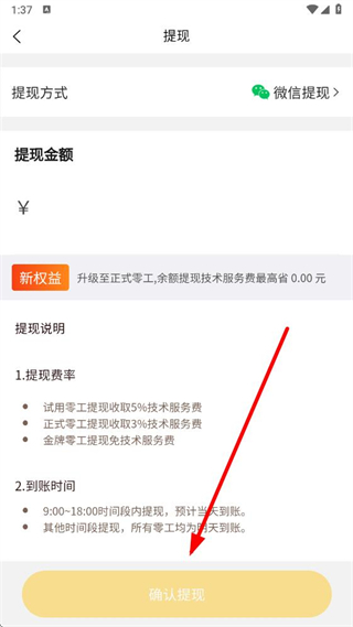 4、在提现页面输入提现金额,点击确认提现按钮,即可完成提现到微信的操作。