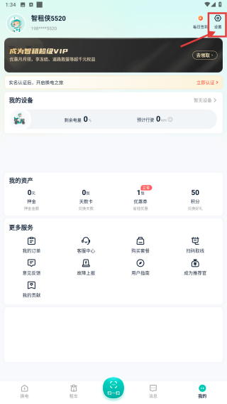 2、在个人中心页面,点击右上角设置按钮,进入设置功能列表。
