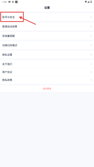 3、在设置页面,点击账号与安全选项,进入账号安全页面。