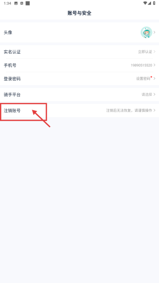 4、在账号安全页面,点击注销账号选项,提交账号注销申请。