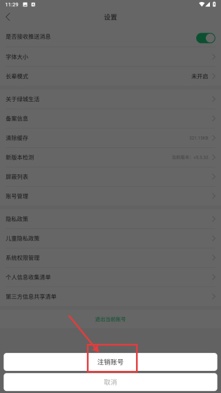 4、在弹出的选项中,点击注销账号选项,提交账号注销申请。