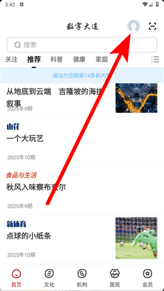 1、打开数字大连,点击页面右上角的登录入口,进入个人中心页面。