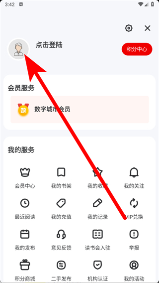 2、在个人中心页面,点击点击登陆区域,进入账号登录界面。