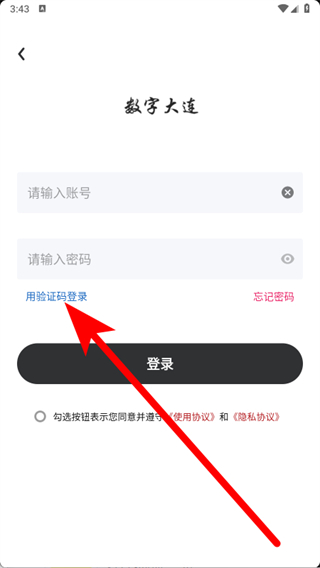 3、在登录界面,点击用验证码登录选项,进入验证码登录页面。