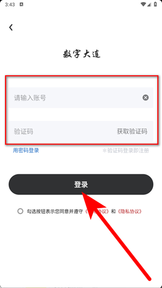 4、在验证码登录页面,输入账号,点击获取验证码,输入后,点击登录按钮,完成账号登录操作。