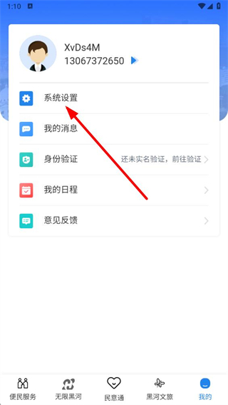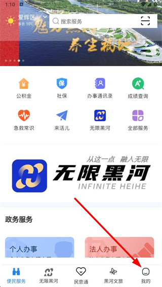 1、在我的黑河app首页点击我的选项,进入个人页面。