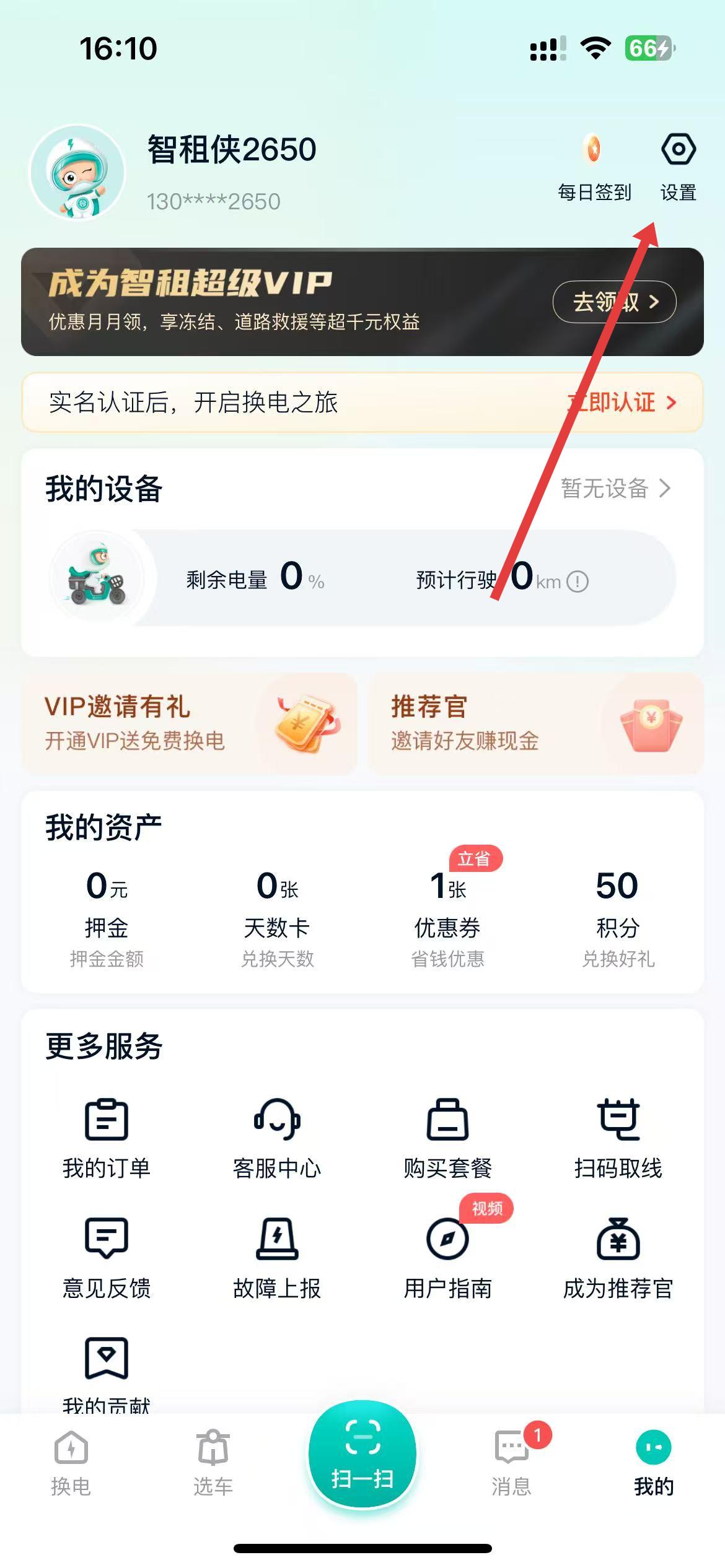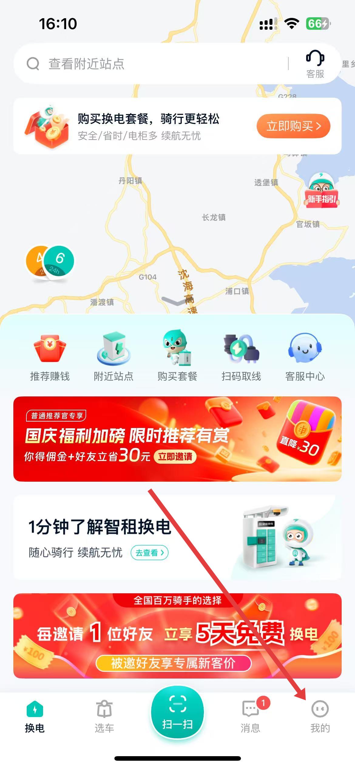 1、打开智租换电APP,点击底部导航栏中的我的选项,进入个人相关界面。
