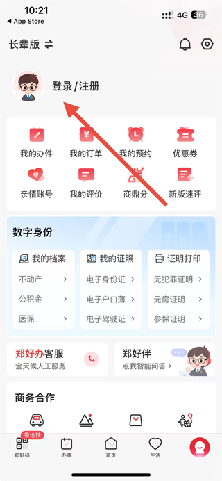 1、在郑好办app首页点击我的选项,进入个人页面。