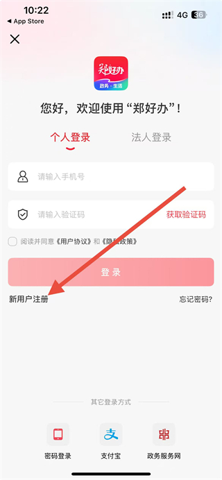 3、在登录页面点击新用户注册选项,进入个人用户注册页面。