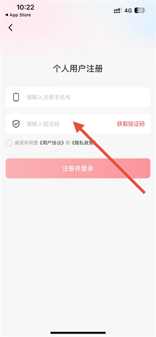4、在个人用户注册页面输入注册手机号,获取验证码,勾选同意相关协议后点击注册并登录按钮,完成注册操作。
