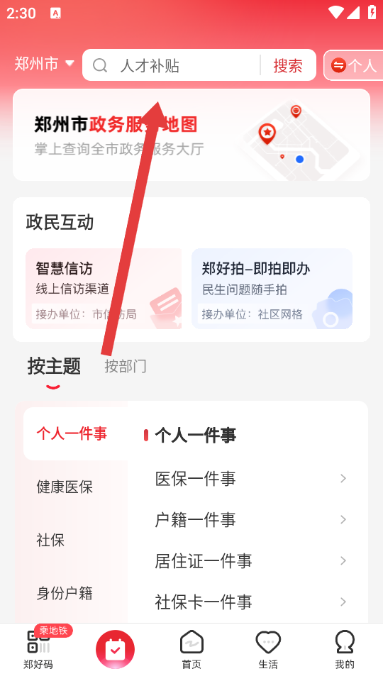 2、在办事页面顶部,点击搜索框默认显示人才补贴提示文字,点击进行输入自己想要查询的事物,方便后续检索。
